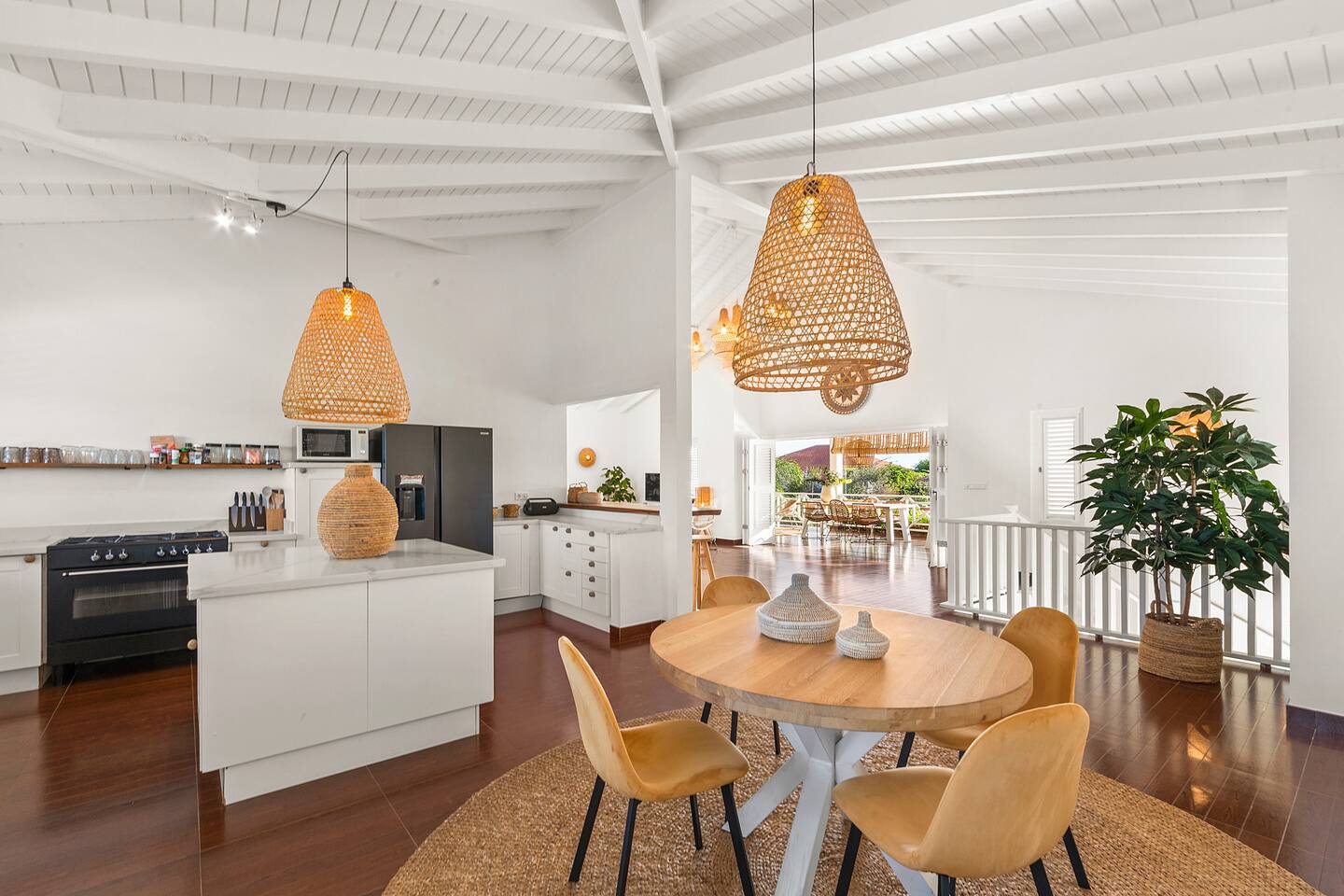 De villa heeft een grote bovenverdieping met hoge plafonds, een ruime luxe keuken en een heerlijke porch met zeezicht. Op de porch is een ruim eetgedeelte en 2 grote lounge gedeeltes. In het woongedeelte binnen is een ruim zitgedeelte met flat screen tv en nog een extra eetgedeelte. Op de bovenverdieping bevindt zich ook een master bedroom met walk inn closet en badkamer.